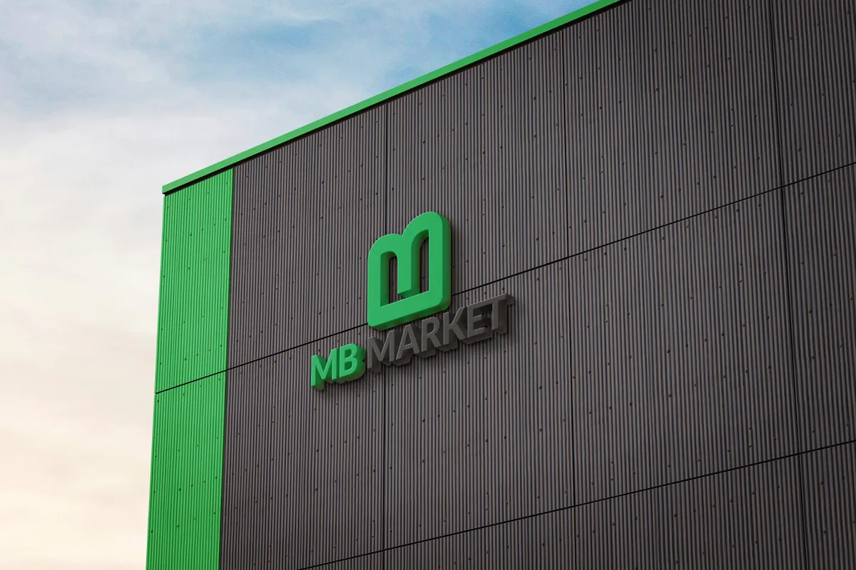 Logotyp "MB Market" zestawiono z sygnetem w sposób przejrzysty i mocno wyważony. Pierwszy człon - "MB" - zapisano w zieleni, dzięki czemu tworzy bezpośrednie połączenie z sygnetem i wzmacnia rozpoznawalność marki. Drugi człon - "MARKET" - w czerni nadaje całości stabilności i podkreśla profesjonalny charakter działalności. Użycie prostej, bezszeryfowej typografii zapewnia czytelność i łatwość adaptacji logo na wszystkich nośnikach.