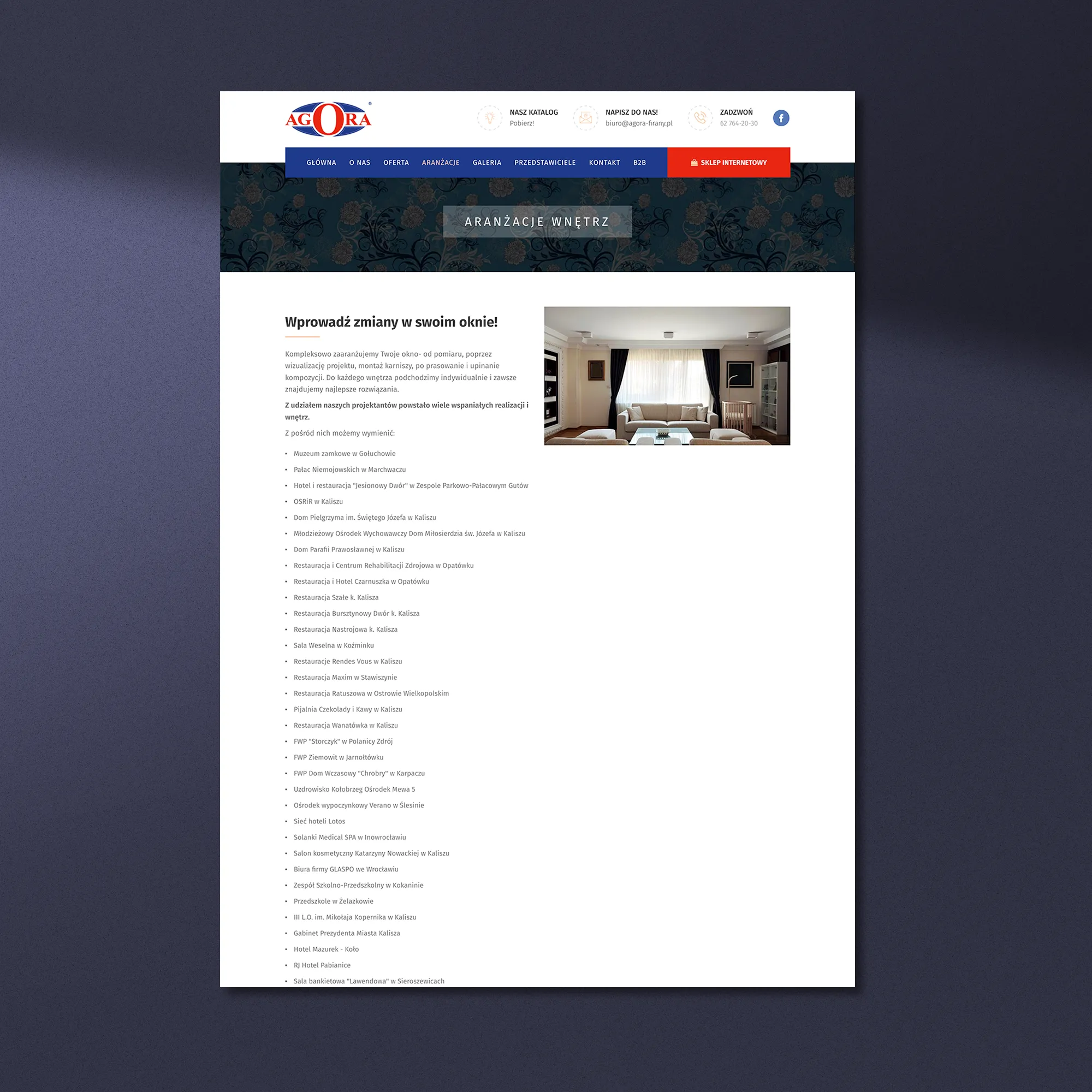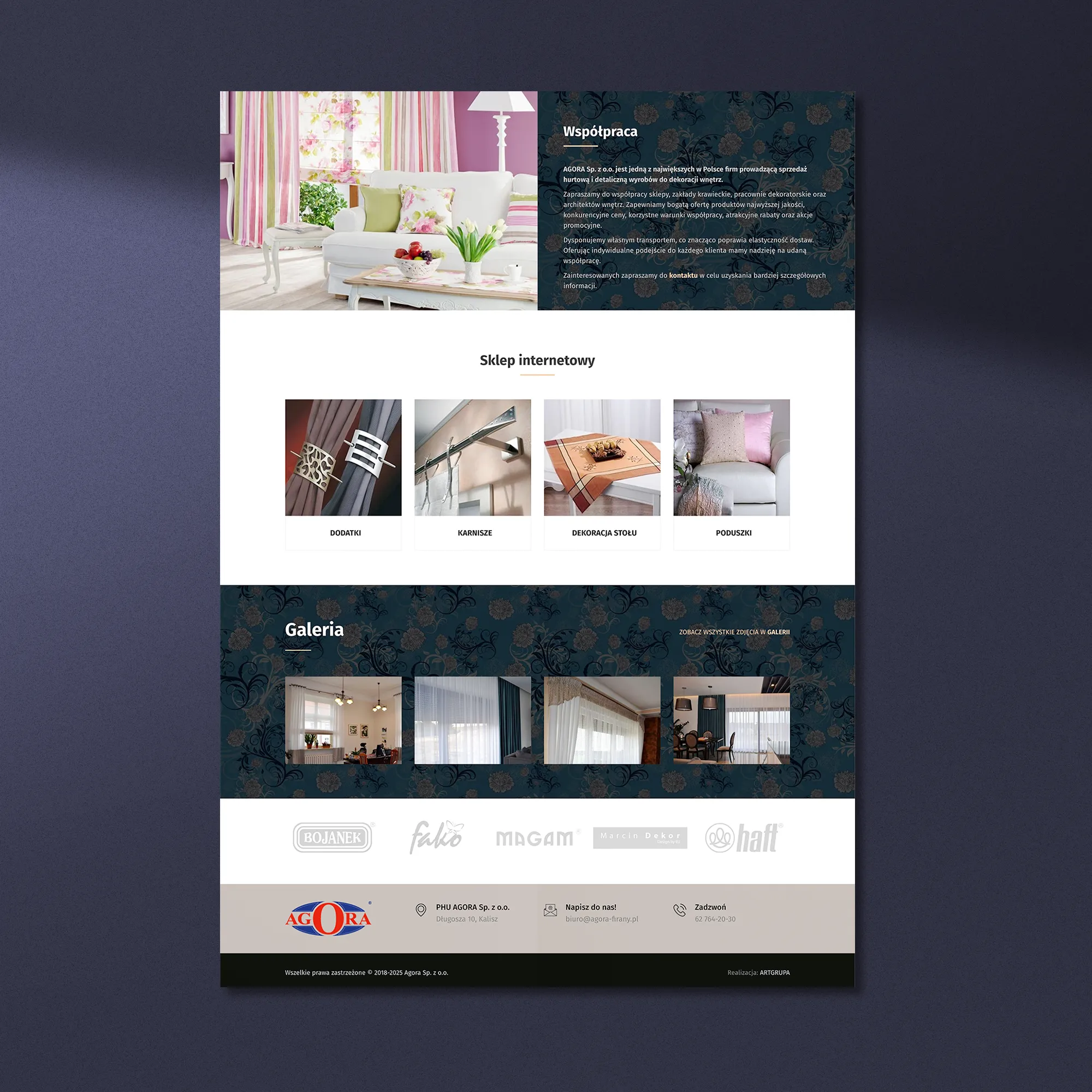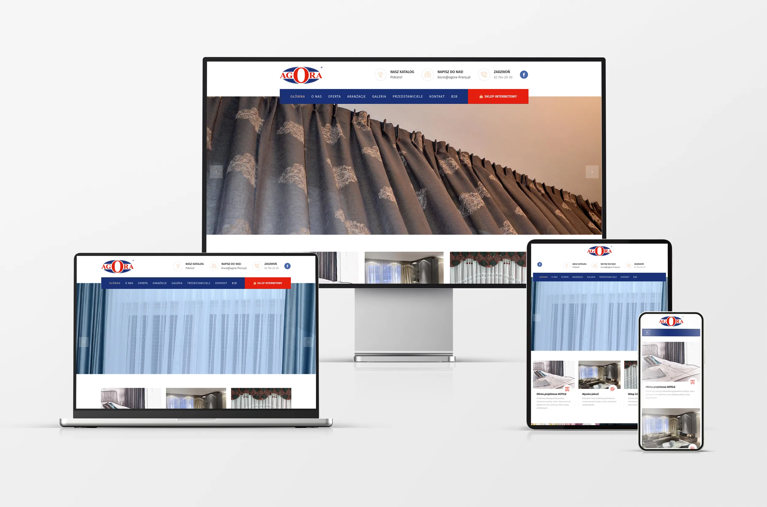 Spółka AGORA jeden z największych w Polsce dystrybutorów wyrobów dekoracyjnych do aranżacji wnętrz, zleciła nam przygotowanie nowoczesnej strony internetowej prezentującej szeroki asortyment firan, zasłon, koronek oraz karniszy. Projekt powstał w oparciu o autorskie rozwiązania, z pełnym dostosowaniem do urządzeń mobilnych i oprawą graficzną nawiązującą do elegancji branży tekstylnej.