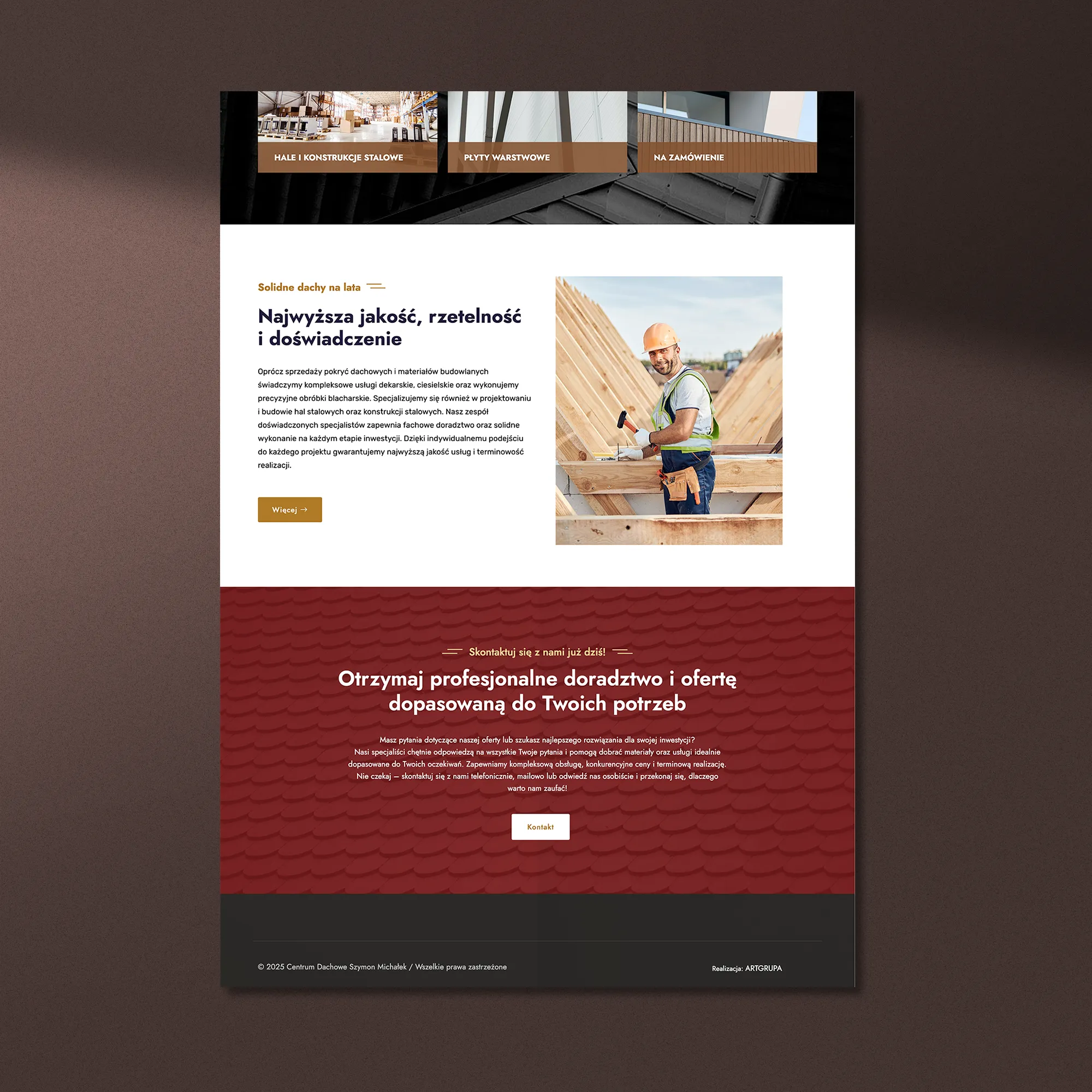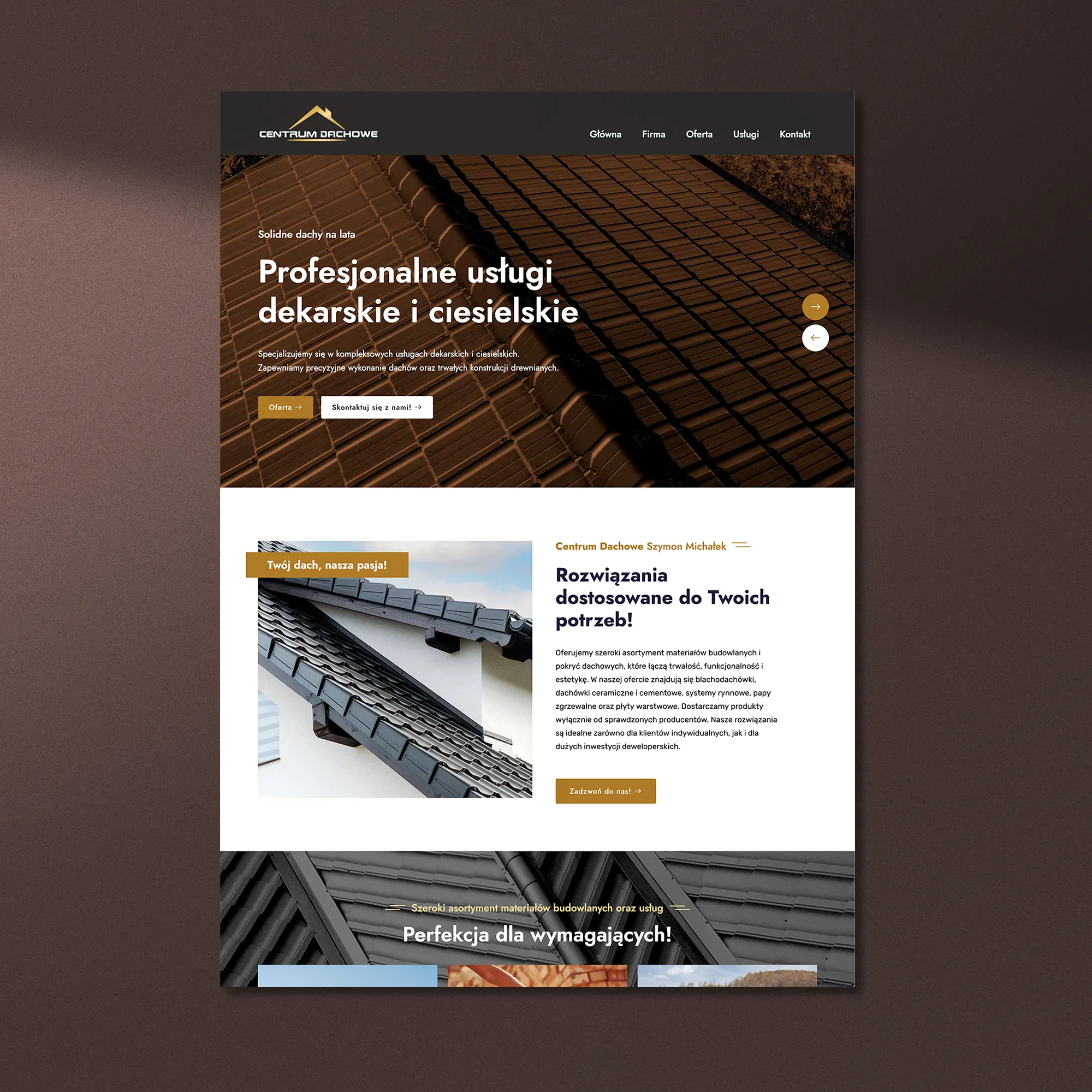 Centrum Dachowe Szymon Michałek zleciło nam przygotowanie nowoczesnej strony internetowej stworzonej w oparciu o dedykowaną architekturę, w pełni dostosowanej do urządzeń mobilnych i zaprojektowanej zgodnie z zasadami UX/UI. Projekt został przygotowany w kolorystyce zgodnej z identyfikacją firmową, aby zachować spójność estetyczną z materiałami stosowanymi przez przedsiębiorstwo.