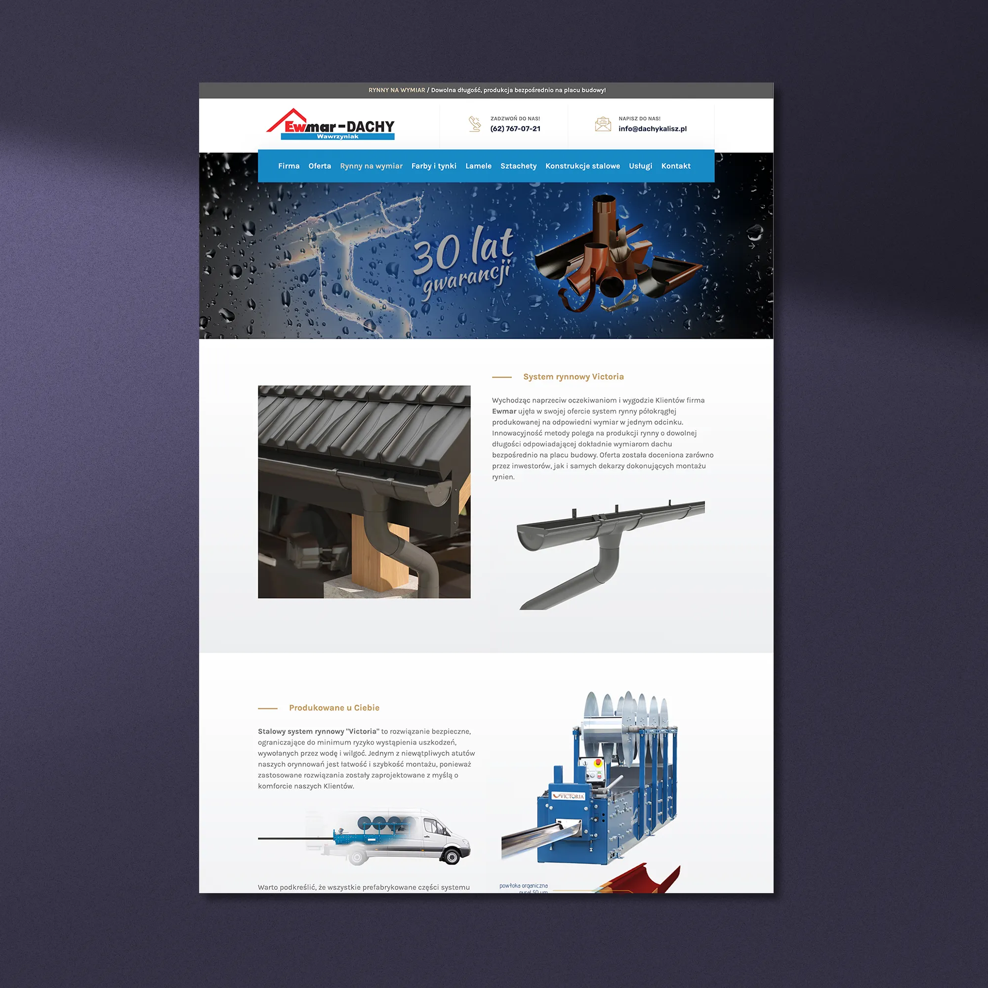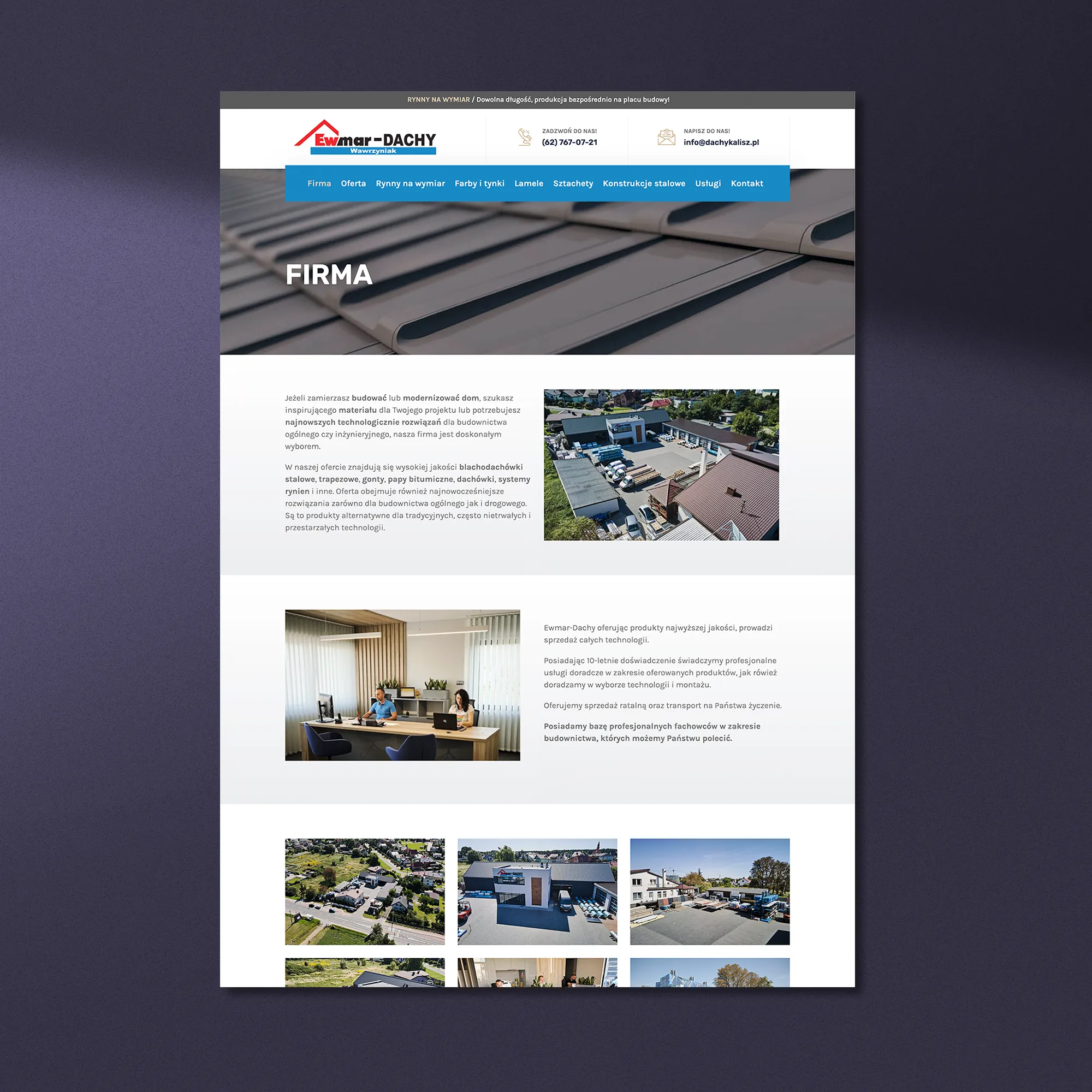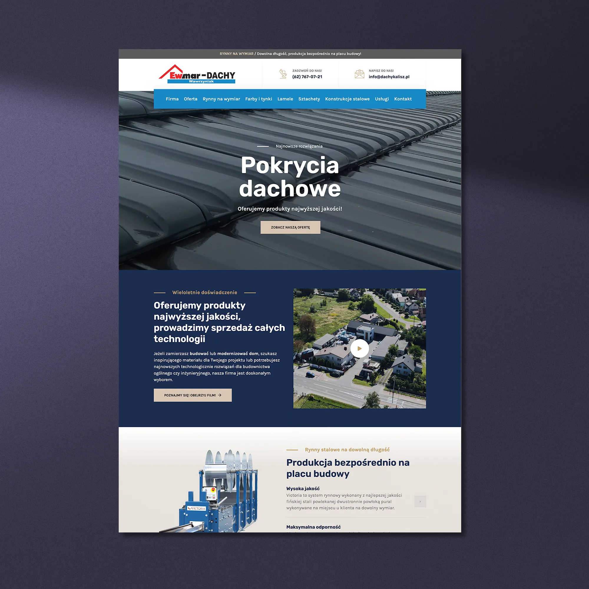 Firma Ewmar-Dachy powierzyła nam realizację kompleksowego projektu obejmującego przygotowanie nowoczesnej strony internetowej opartej na dedykowanej architekturze, w pełni dostosowanej do urządzeń mobilnych i zaprojektowanej zgodnie z zasadami UX/UI. Projekt graficzny został dopracowany tak, by podkreślać charakter branży i ułatwiać klientom szybkie dotarcie do informacji o produktach i technologiach dostępnych w ofercie.