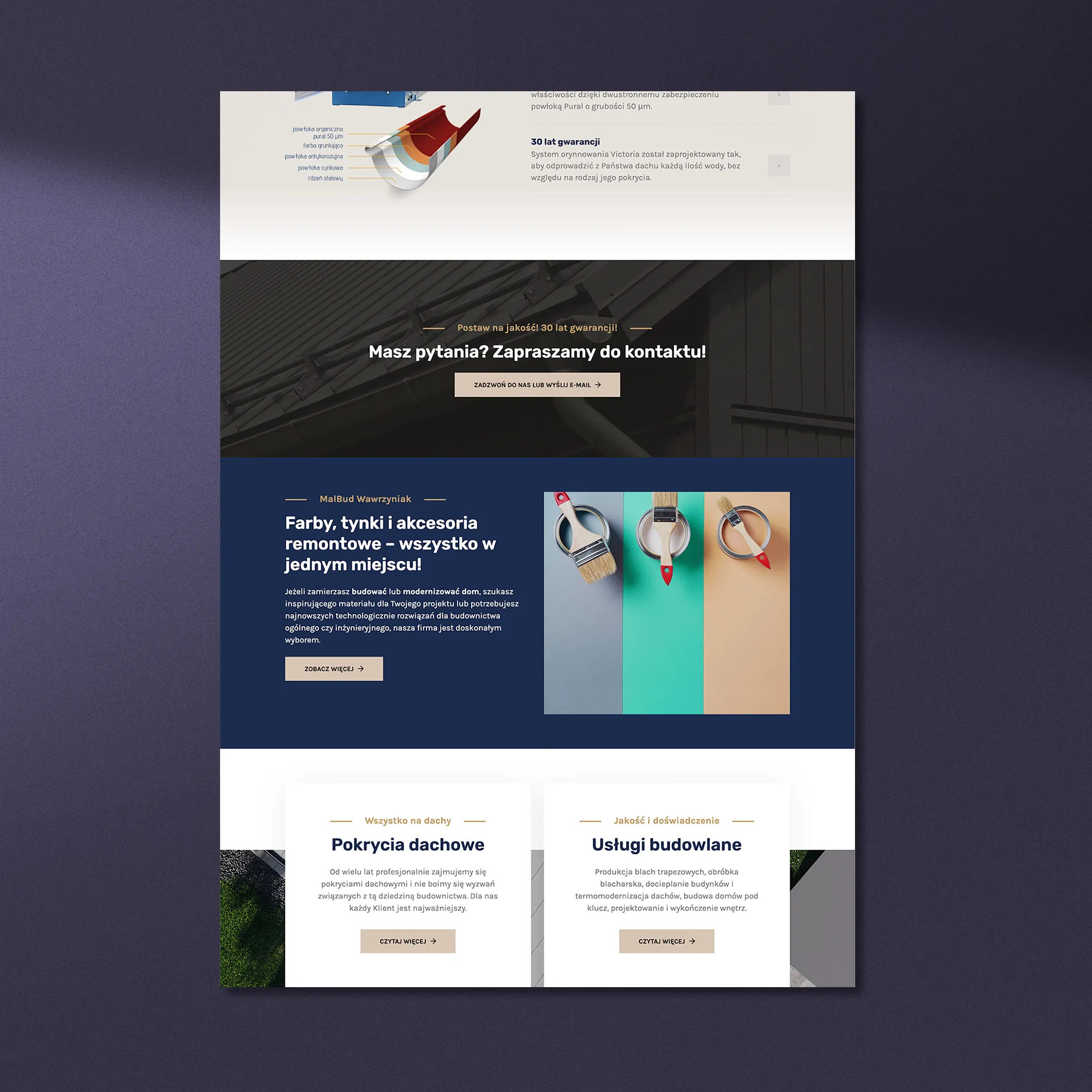 W ramach współpracy przygotowaliśmy również film wizerunkowy, fotografię na potrzeby WWW oraz copywriting i redakcję tekstów, dzięki czemu strona w czytelny i profesjonalny sposób prezentuje bogaty zakres działalności firmy — od sprzedaży wysokiej jakości pokryć dachowych i materiałów budowlanych, po doradztwo technologiczne oraz wsparcie w wyborze rozwiązań dla budownictwa ogólnego i inżynieryjnego. Realizacja podkreśla doświadczenie Ewmar-Dachy i wzmacnia jej wizerunek jako rzetelnego partnera w sektorze materiałów i technologii budowlanych.