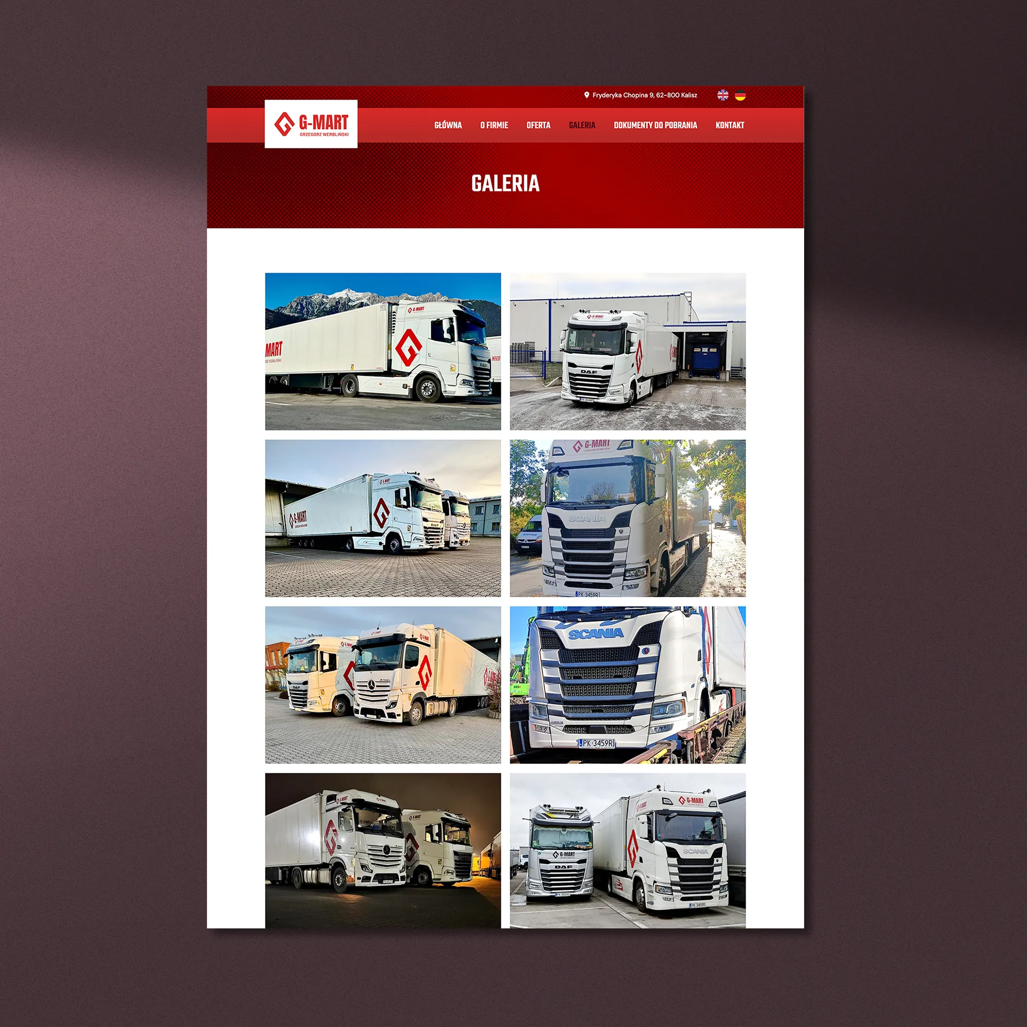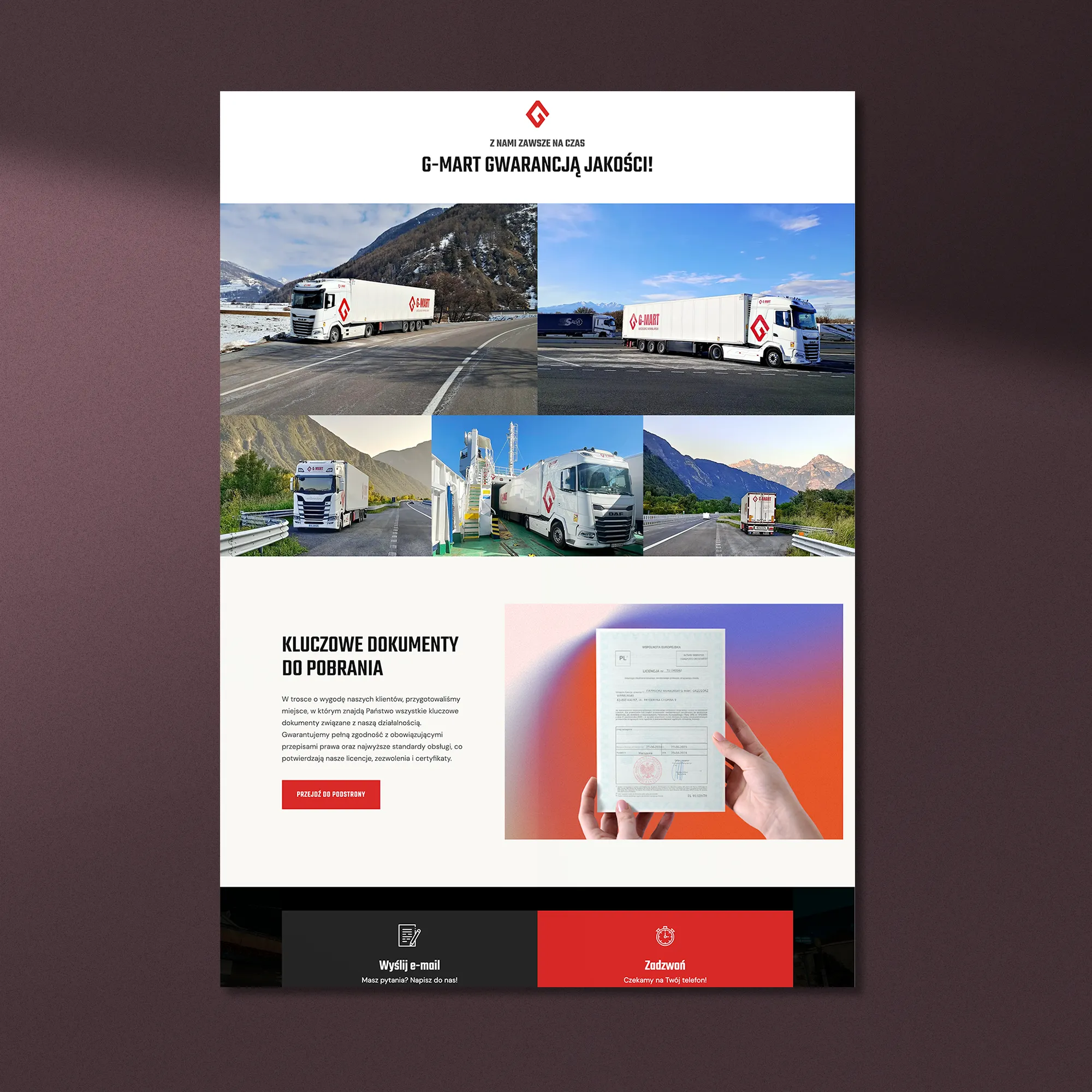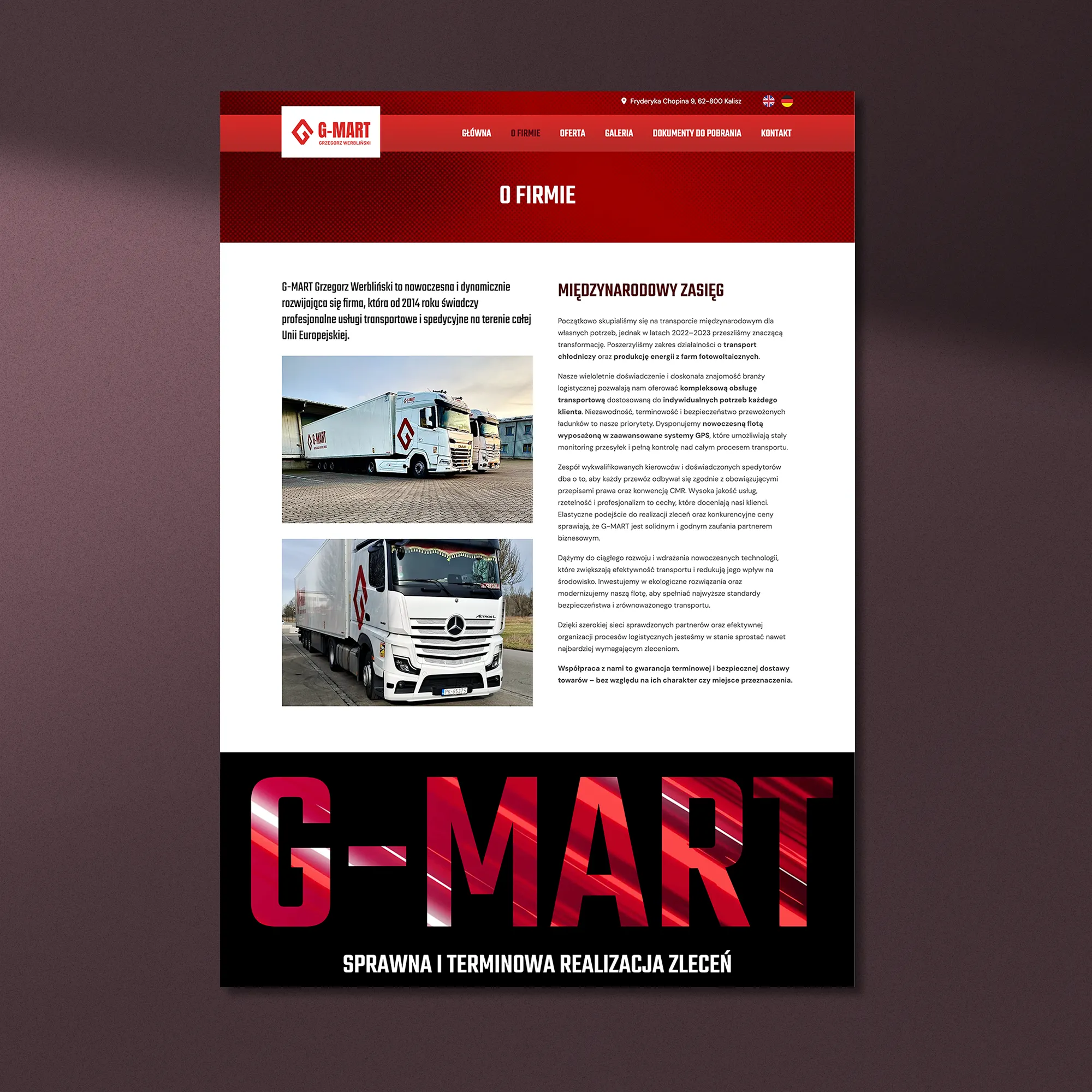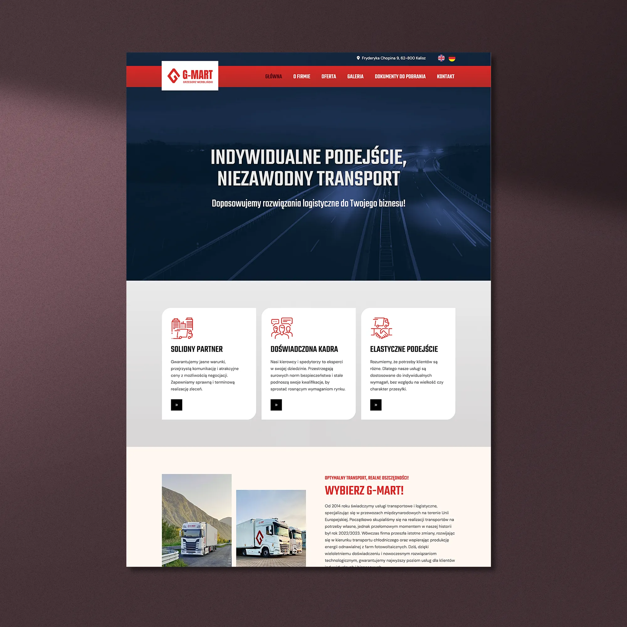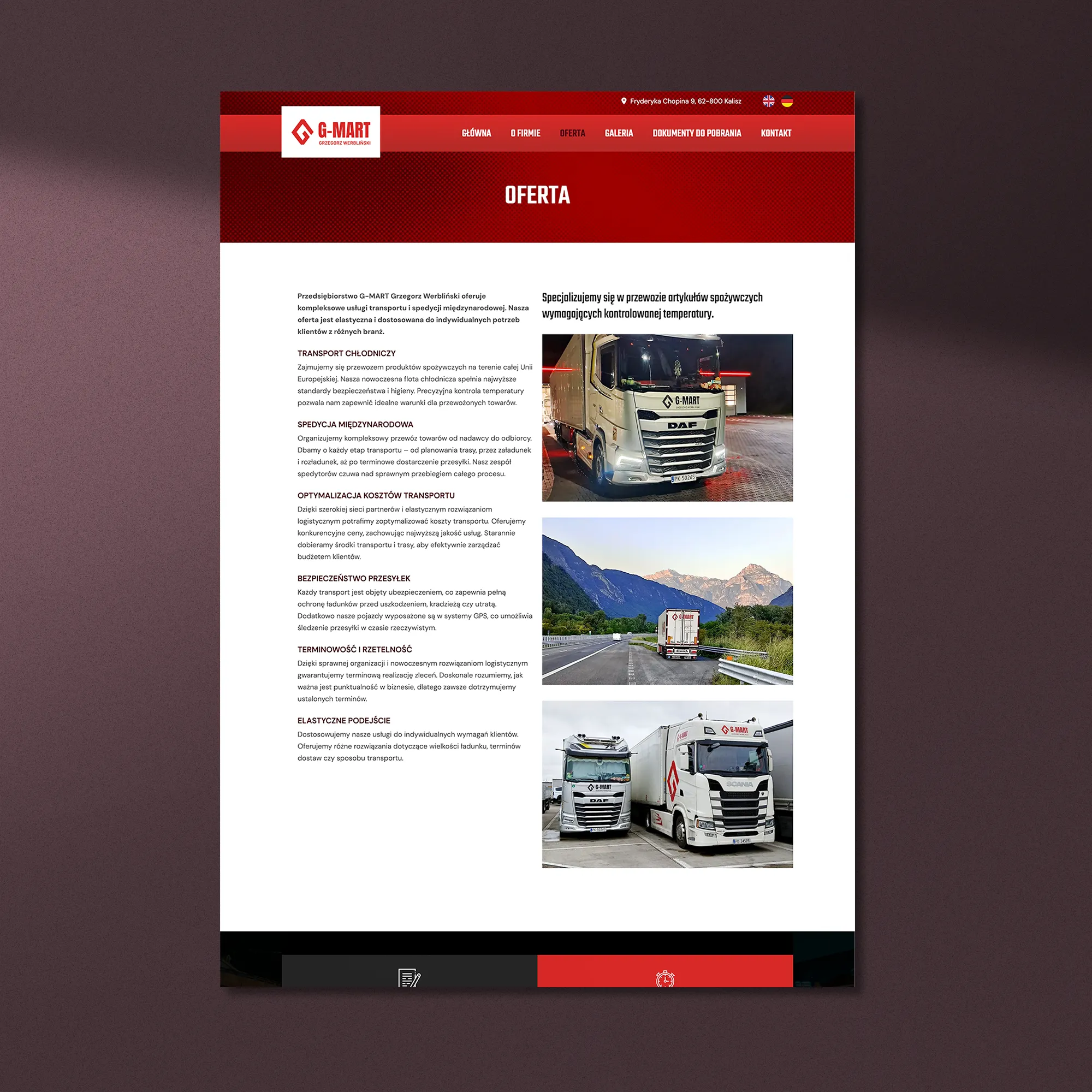 Realizacja dla G-Mart — firmy działającej w sektorze transportu międzynarodowego i logistyki — obejmowała stworzenie nowego serwisu internetowego opartego na naszym autorskim frameworku, który gwarantuje wysoką wydajność, stabilność i elastyczność dalszego rozwoju. Konstrukcja frameworka pozwoliła na precyzyjne odwzorowanie struktury usług oraz przygotowanie modułów ułatwiających rozbudowę strony w przyszłości.
