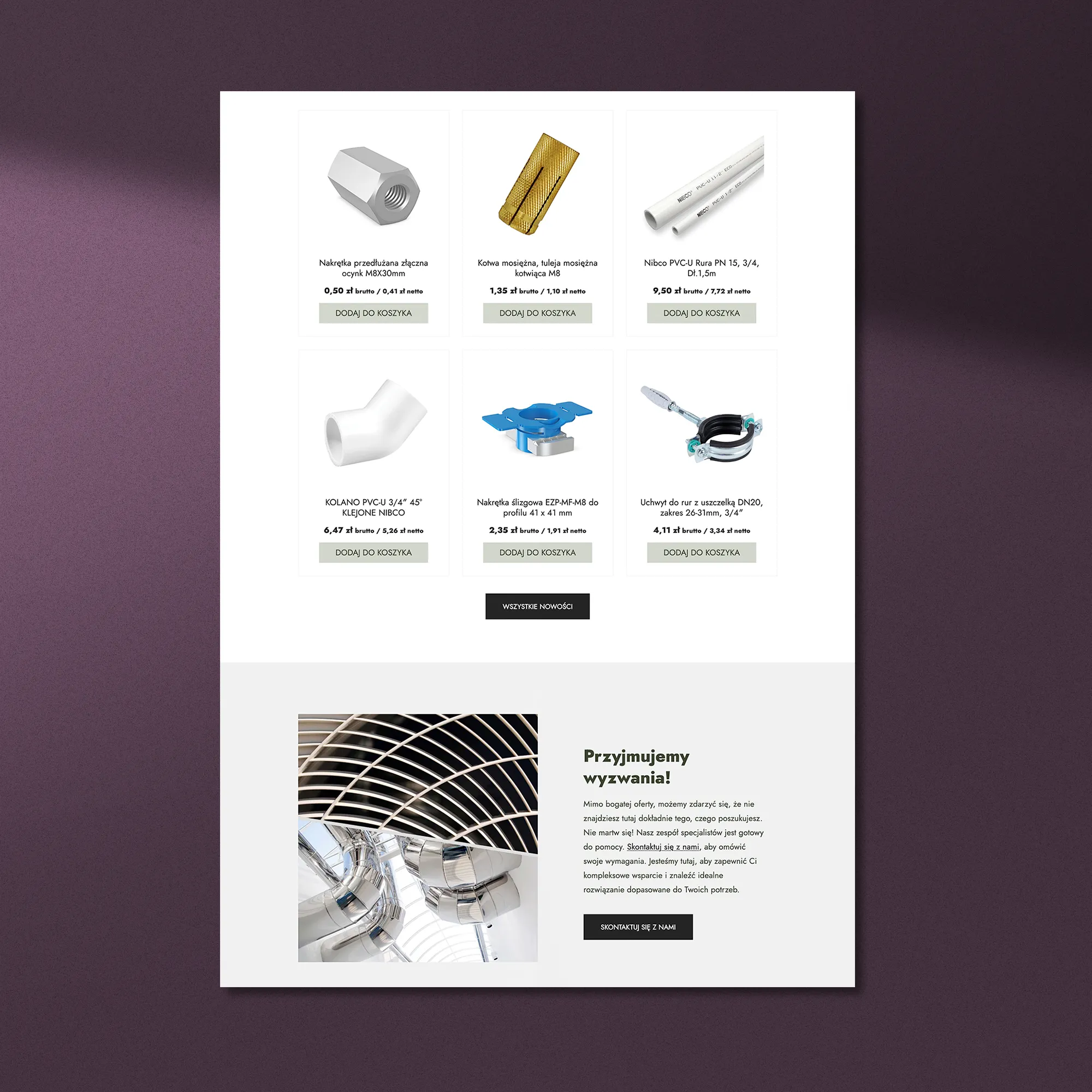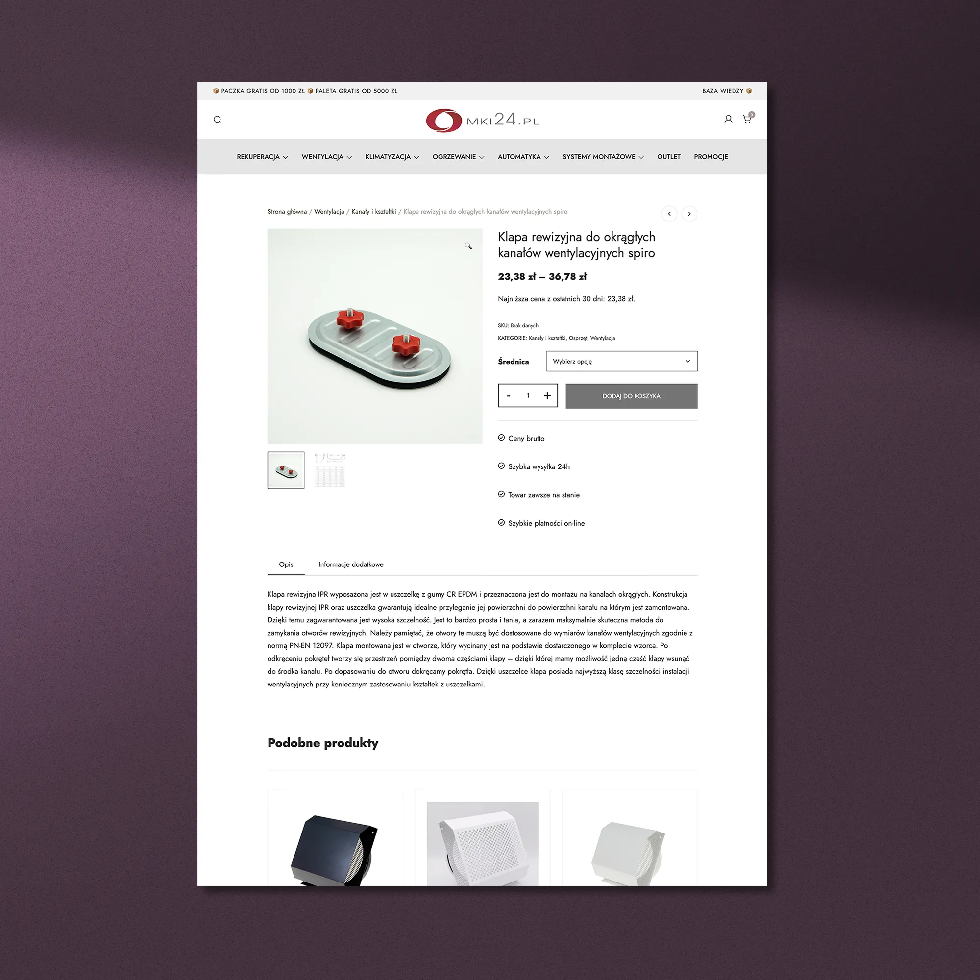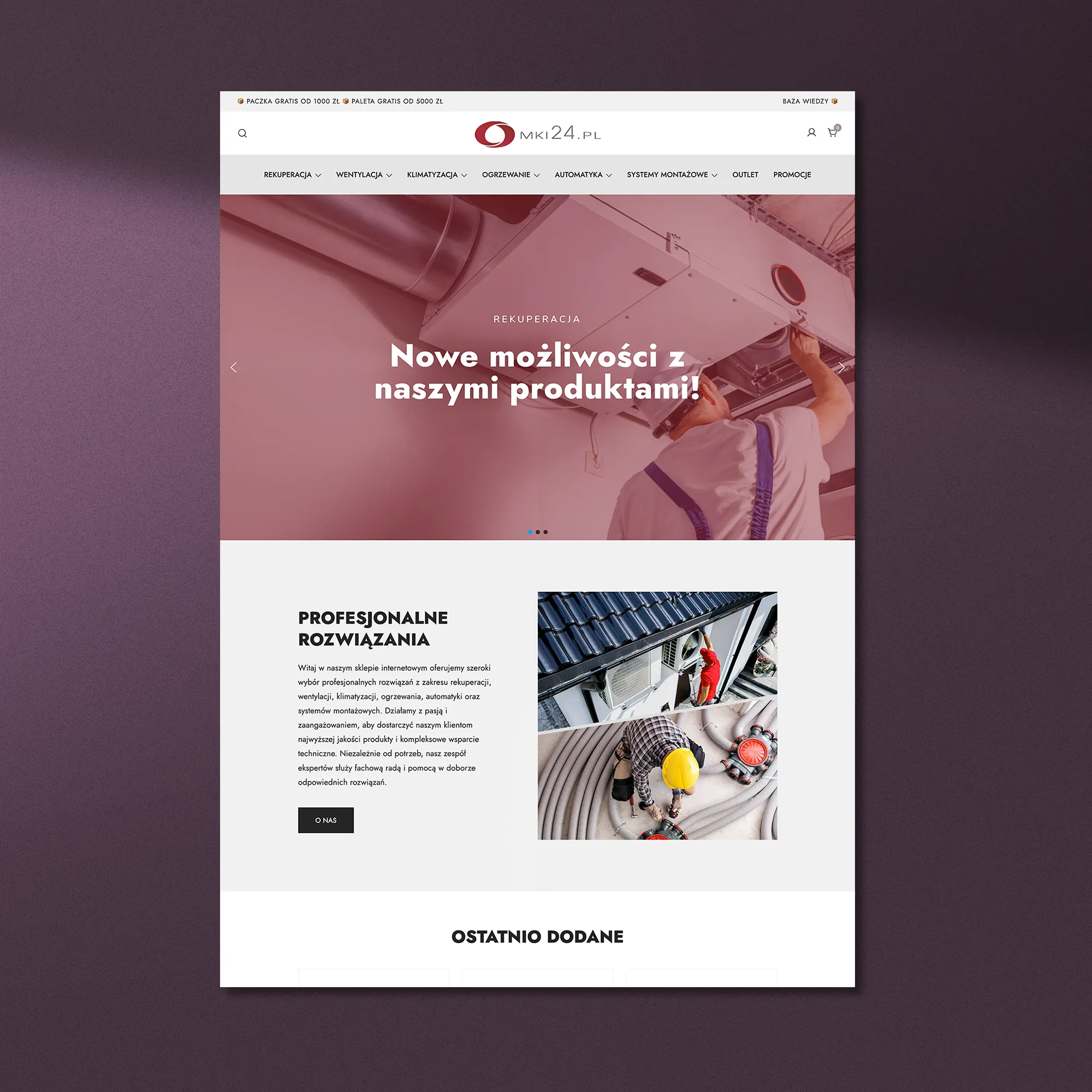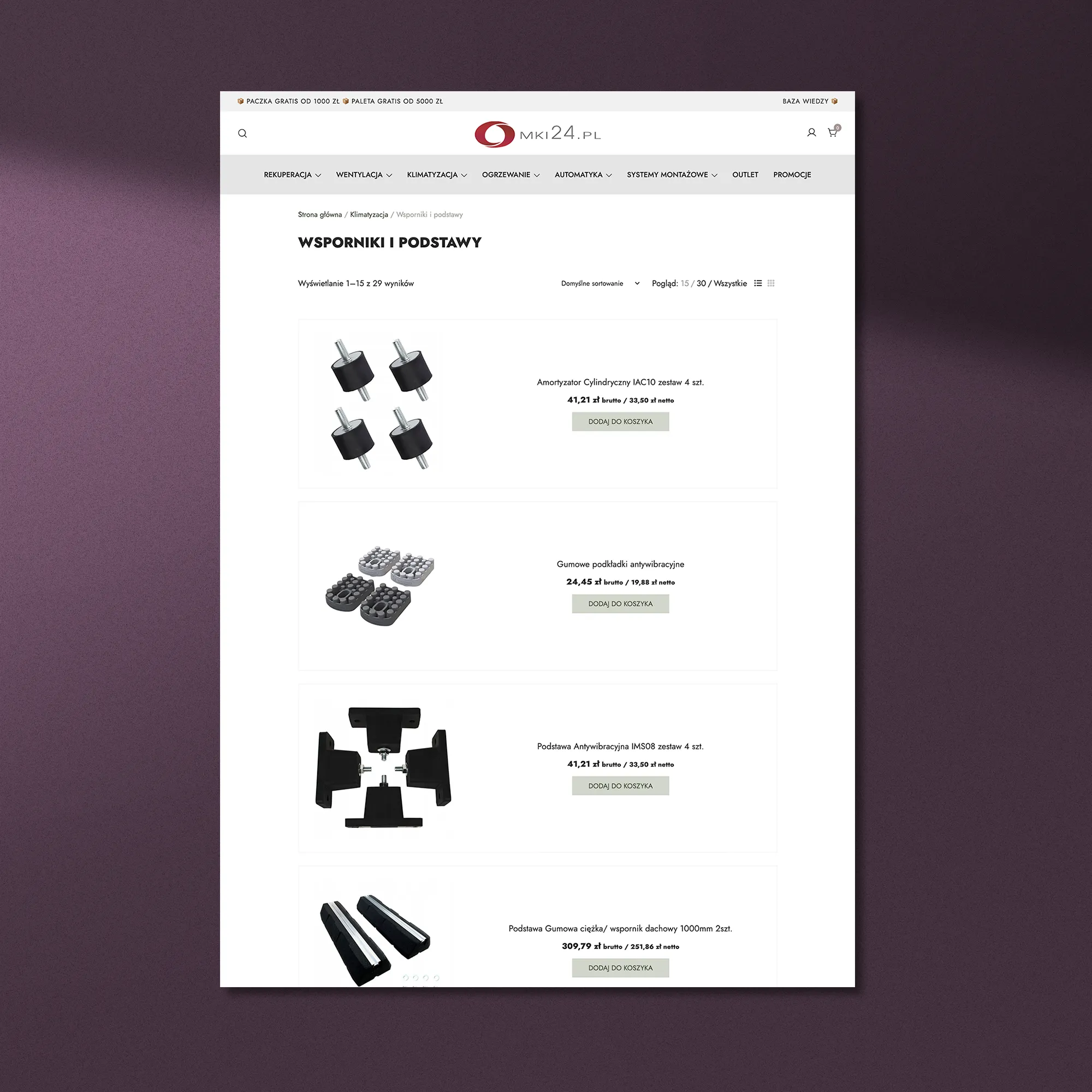 MK Inżynieria zleciła nam przygotowanie sklepu internetowego prezentującego szeroką ofertę produktów z zakresu rekuperacji, wentylacji, klimatyzacji, ogrzewania, automatyki oraz systemów montażowych. Stworzyliśmy nowoczesny, przejrzysty serwis oparty na autorskich rozwiązaniach, zaprojektowany tak, aby wygodnie prowadził użytkownika przez rozbudowane kategorie i umożliwiał szybkie dotarcie do poszukiwanych produktów.