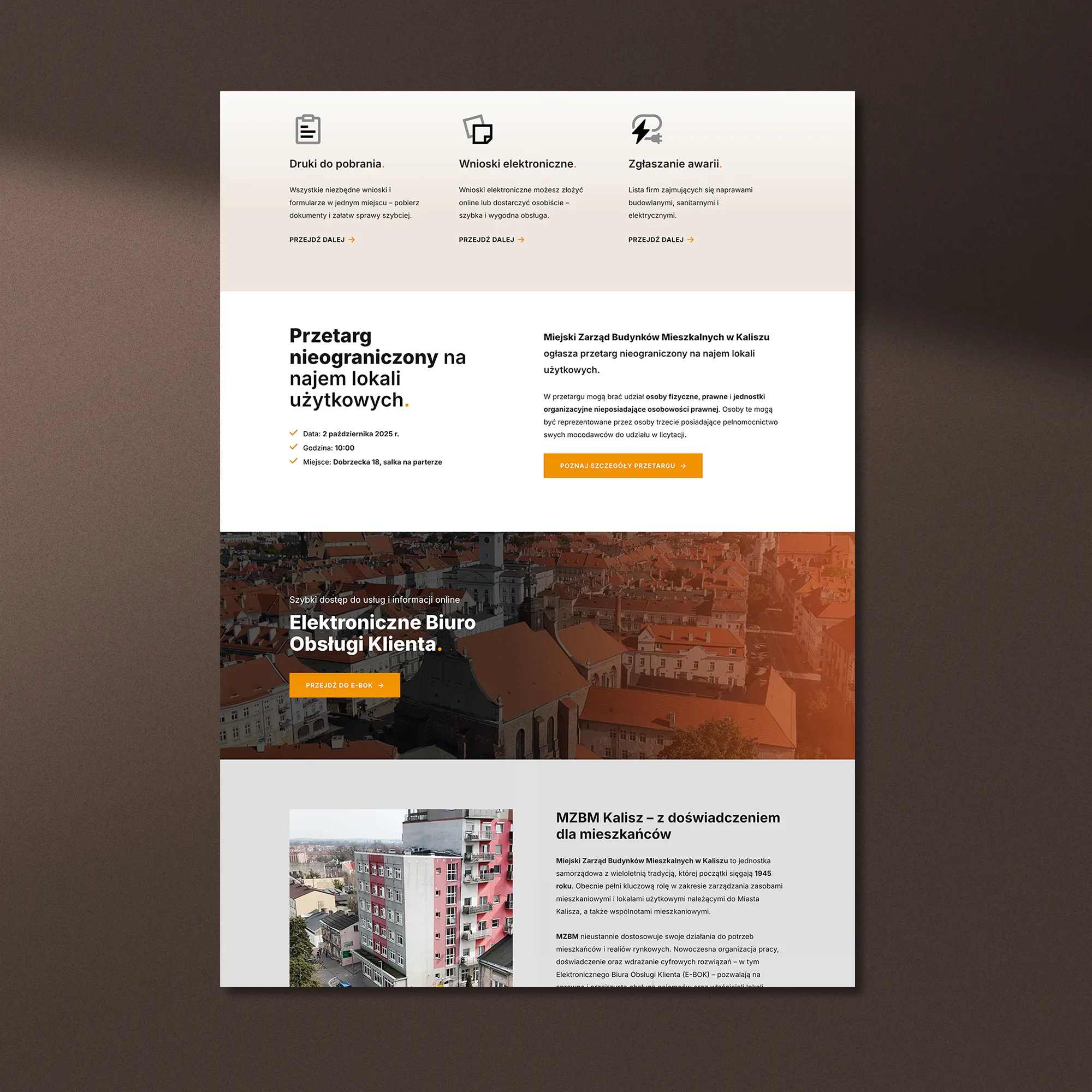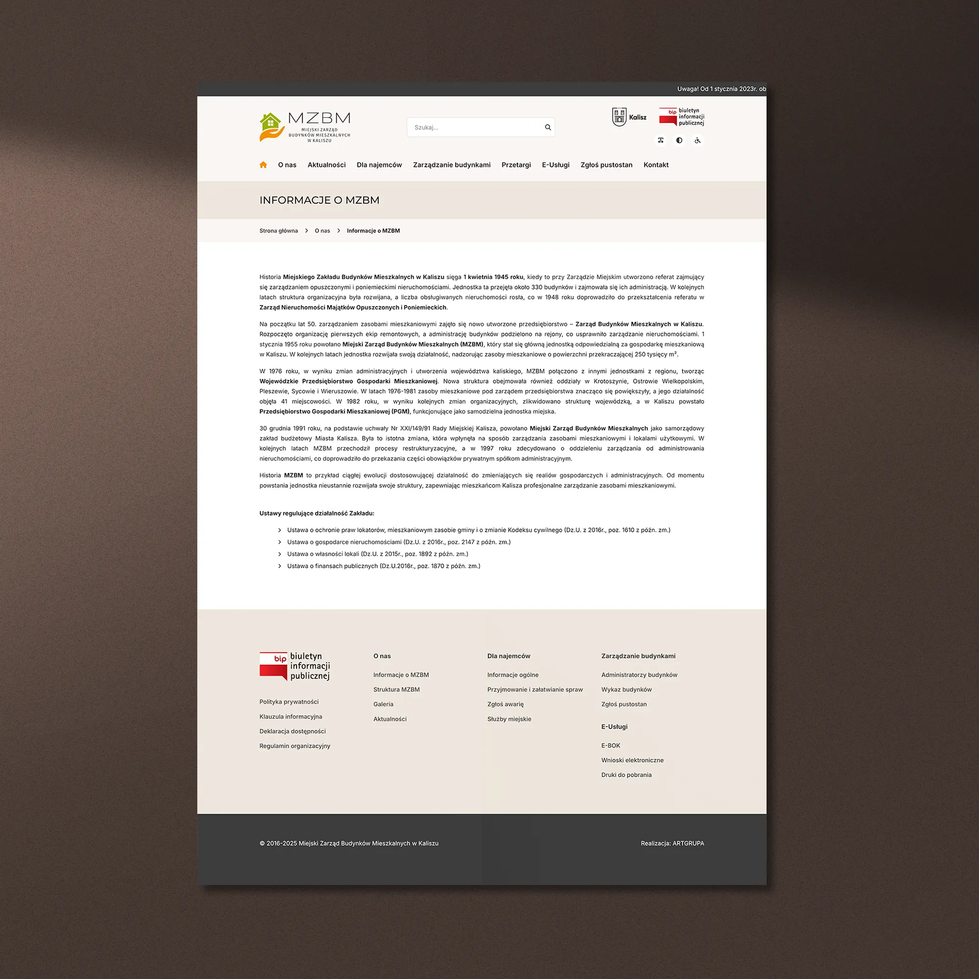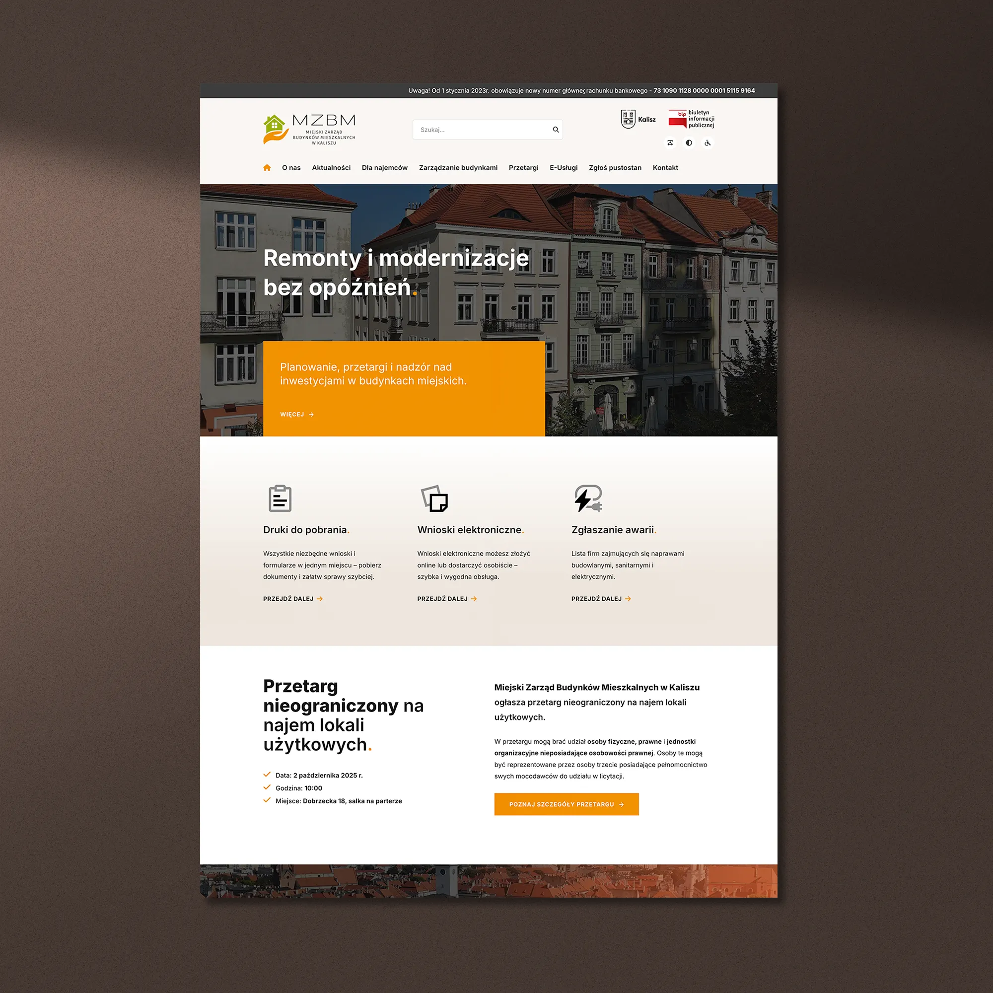Rozbudowana działalność Miejskiego Zarządu Budynków Mieszkalnych w Kaliszu, sięgająca korzeniami 1945 roku, wymagała cyfrowej prezentacji, która w jasny sposób przedstawi zakres odpowiedzialności jednostki i ułatwi mieszkańcom dostęp do potrzebnych informacji. Z tą myślą przygotowaliśmy nowy serwis internetowy, który porządkuje treści i podkreśla rolę MZBM w zarządzaniu zasobami miasta.