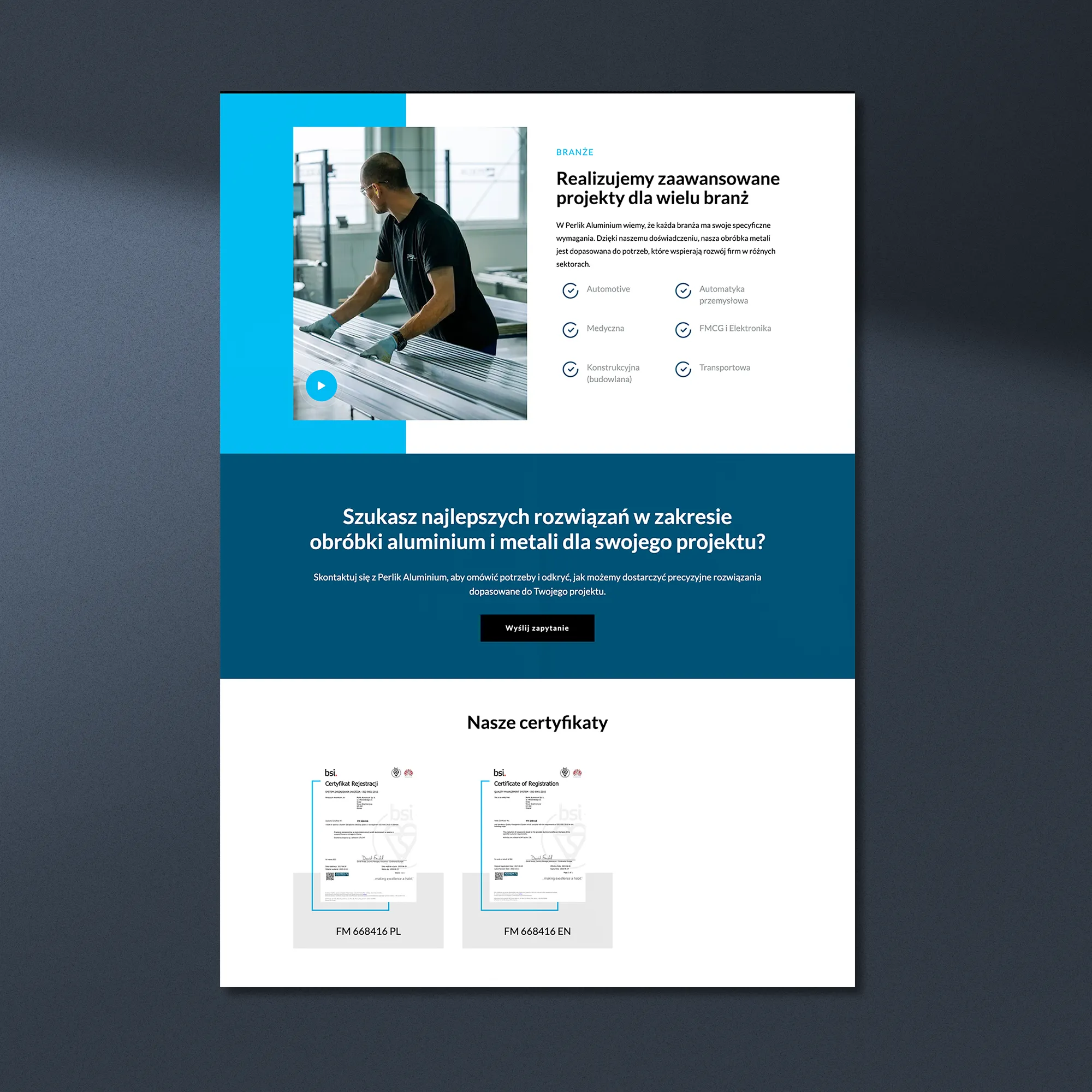 W finalnym wdrożeniu znalazły się sekcje prezentujące materiały wideo, opisy procesów obróbki, listy usług dodatkowych i zorganizowane katalogi kompetencji technicznych. Architektura informacji została przygotowana tak, aby inżynierowie, kontrahenci i partnerzy mogli szybko odnaleźć interesujące ich parametry produkcyjne. Serwis stanowi solidną platformę do profesjonalnej prezentacji możliwości technologicznych Perlik Aluminium.